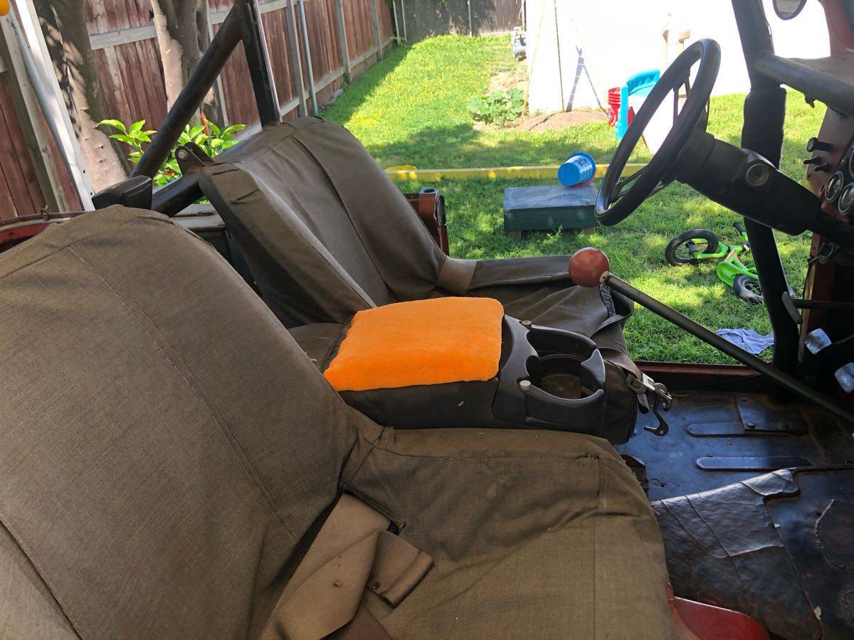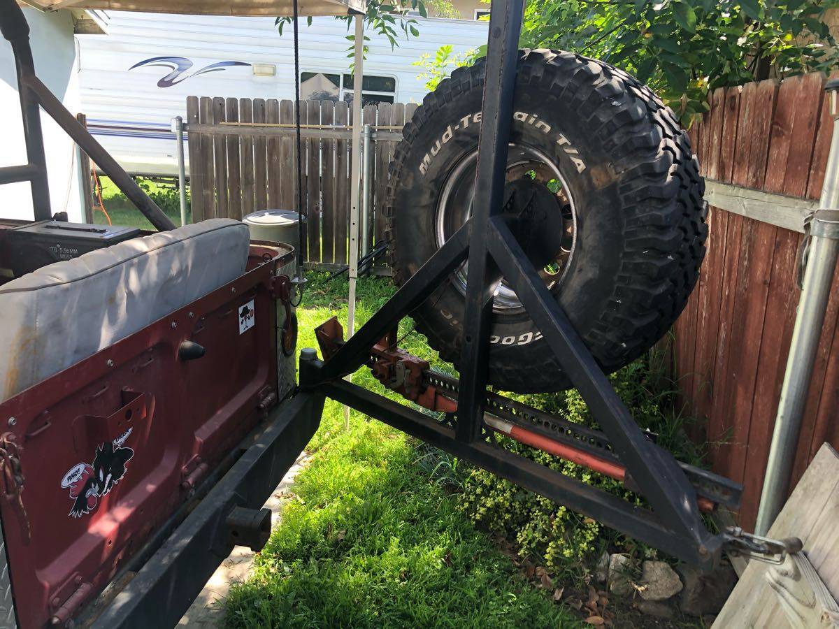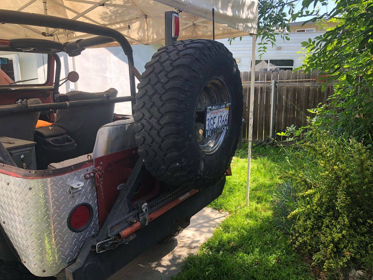 327 Chevy V8 no smog exempt SM 420 transmission with a granny first gear stock Land Cruiser transfer case lockers front and rear 4 inch lift on 33 inch tall tires custom bumpers with spare tire carrier bucket seats no hardtop !!! But I do have hard doors I do have soft half doors I do have a soft top for it but it needs to be replaced the sun has destroyed it front brakes have been upgraded to Toyota mini truck disc brakes needs TLC has not been driven much in the last two years