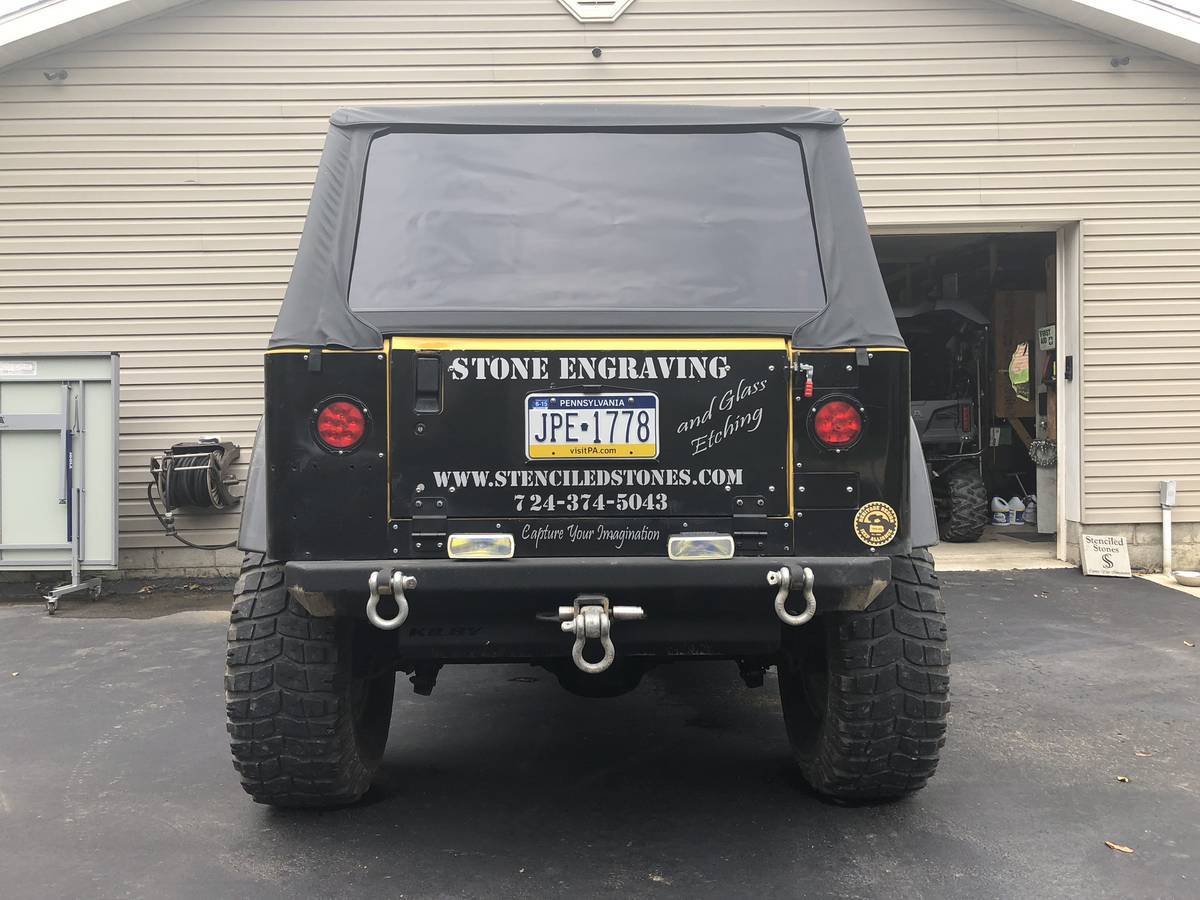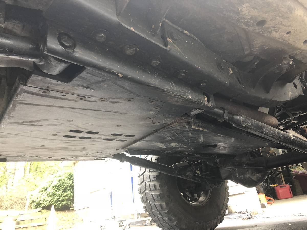 - Rear “CJ” style flip down tailgate conversion -this is cool!!! Also has a skidplate over the tailgate. Small dent at the handle, but works as designed.